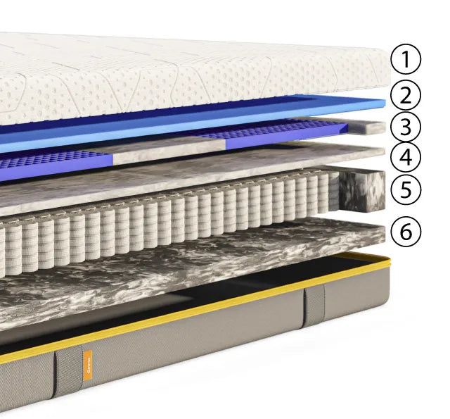 Esta camada de espuma de forma ergonómica adapta-se ao teu corpo e distribui de forma ótima a pressão corporal. Assim, podes dormir confortavelmente independentemente do teu tipo de corpo e posição de sono.